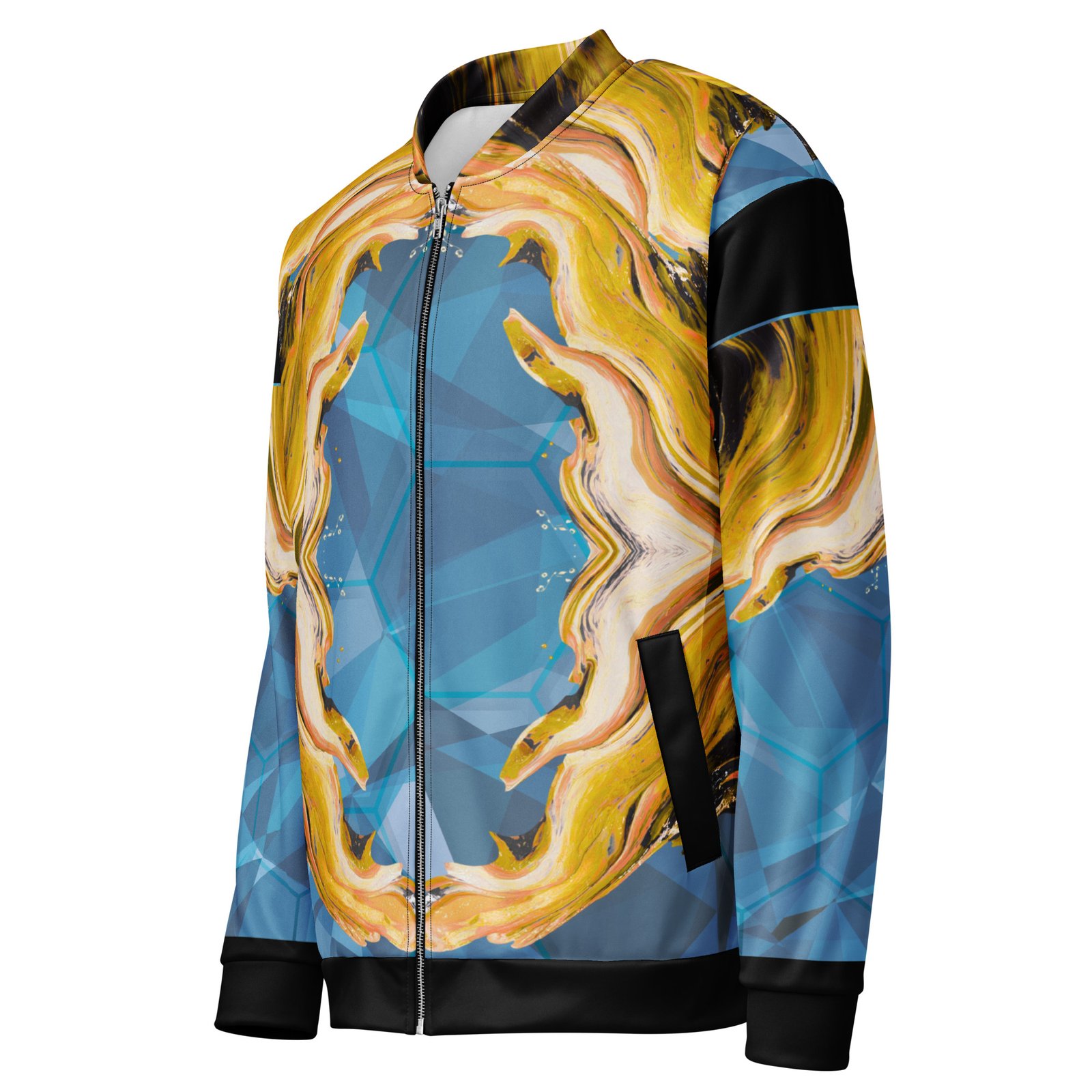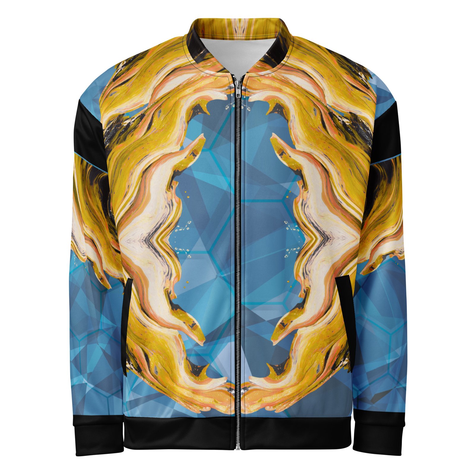 Add a little zing to your wardrobe with this vibrant All-Over Print Bomber Jacket. Wear it on a basic t-shirt, or layer it on top of a warm hoodie—it’ll look great either way. With a brushed fleece inside, and a relaxed unisex fit, this Bomber Jacket is just the stuff of the dreams, so be quick to grab yourself one!